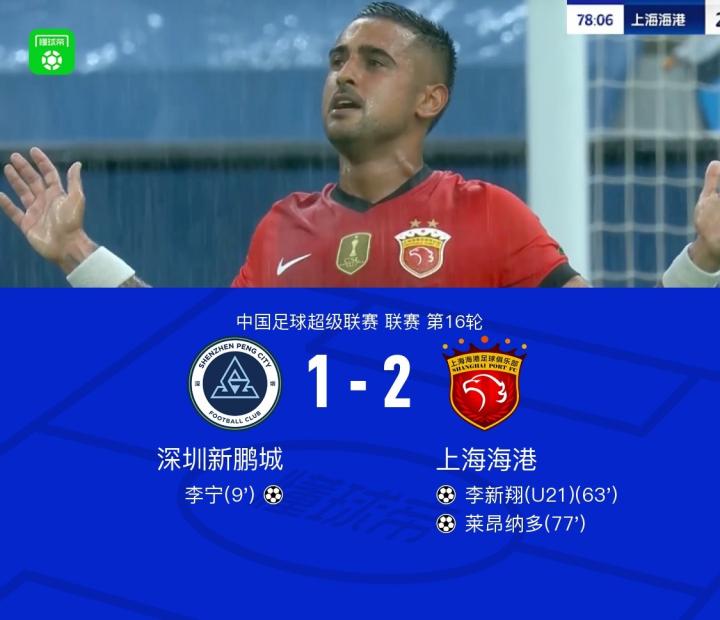 扫描下载懂球帝首页>动态> 海港2-1逆转新鹏城,莱昂纳多传射制胜,李新翔世界波建功