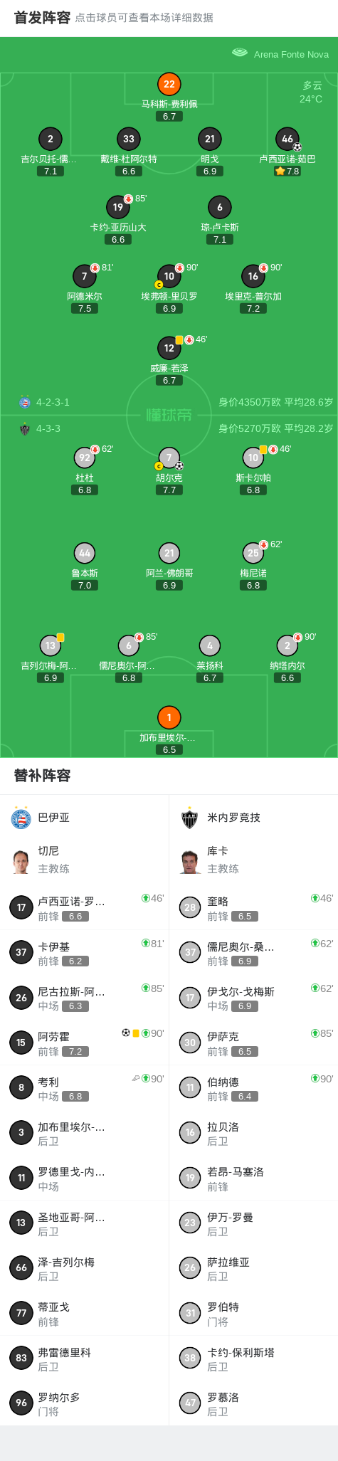 第53分钟,巴伊亚球员卢西亚诺-茹巴打入一球。