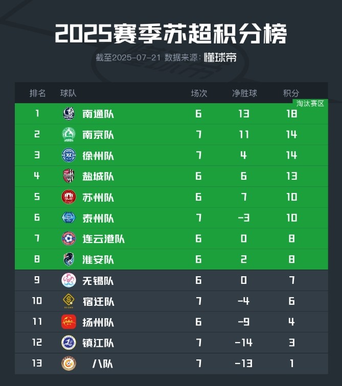 7月20日晚,“苏超”第7轮角逐,苏州队主场4-0击败镇江队。目前,苏州队排在“苏超”积分榜第五位。