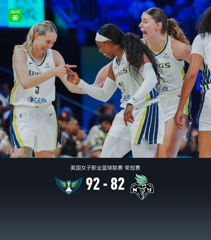 第四节飞翼阿齐亚哈-詹姆斯拿下3分,自由人萨布丽娜-约内斯库拿下7分,最终飞翼92-82战胜自由人
