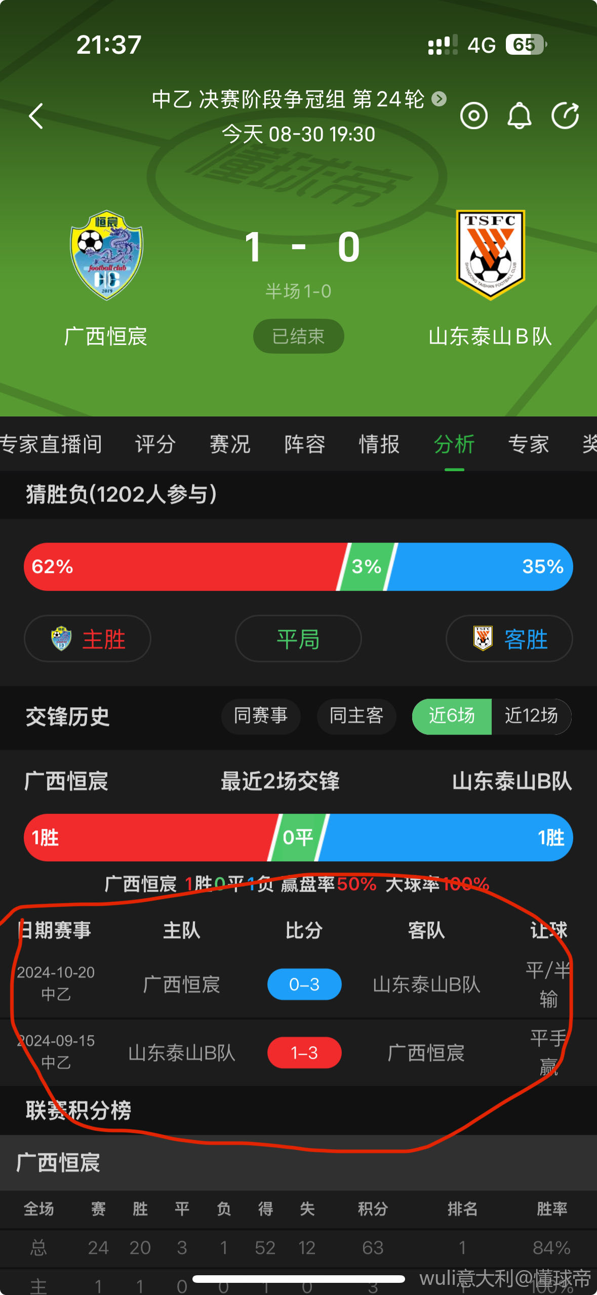 10-05 22:13山东泰山B队0-0广西恒宸,纪鑫龙错失良机,艾孜海尔造险