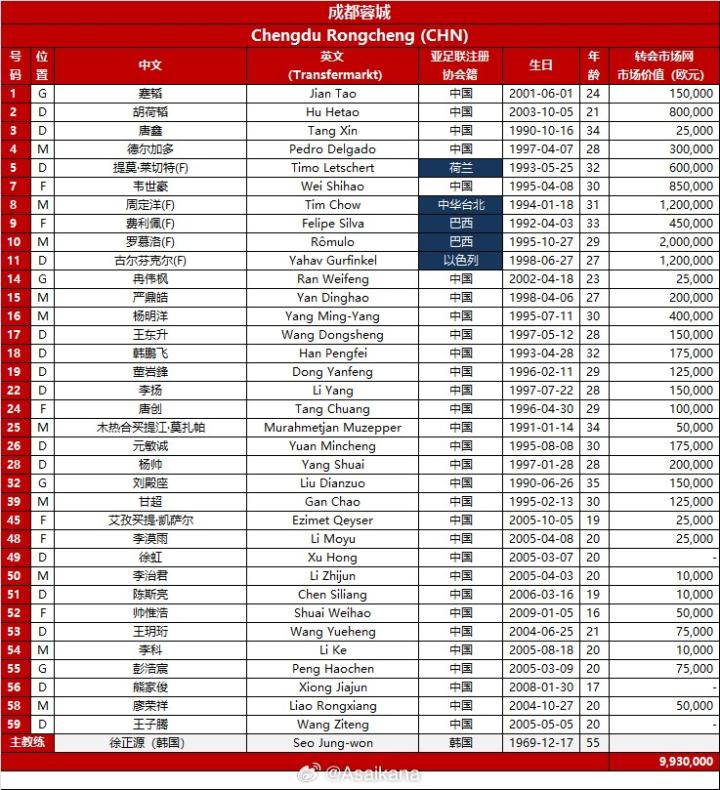 扫描下载懂球帝首页>动态> 成都蓉城亚冠精英赛大名单:4外援入选,卡隆因伤缺席