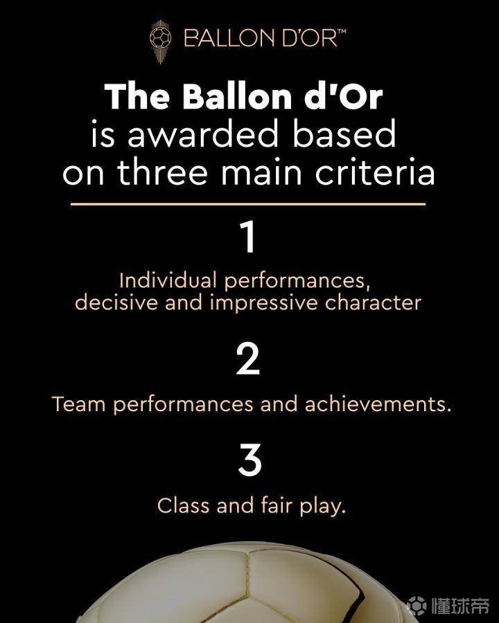 金球奖官方明确规定,金球奖评选明确参照三个标准:个人竞技表现与比赛决定性作用,团队的荣誉和成就,竞技风度与公平竞赛精神。