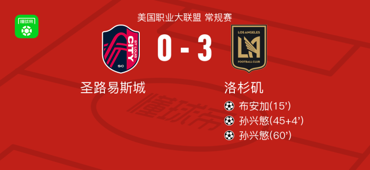 扫描下载懂球帝首页>动态> 洛杉矶3-0大胜圣路易斯城取美职联4连胜,孙兴慜双响,布安加破门