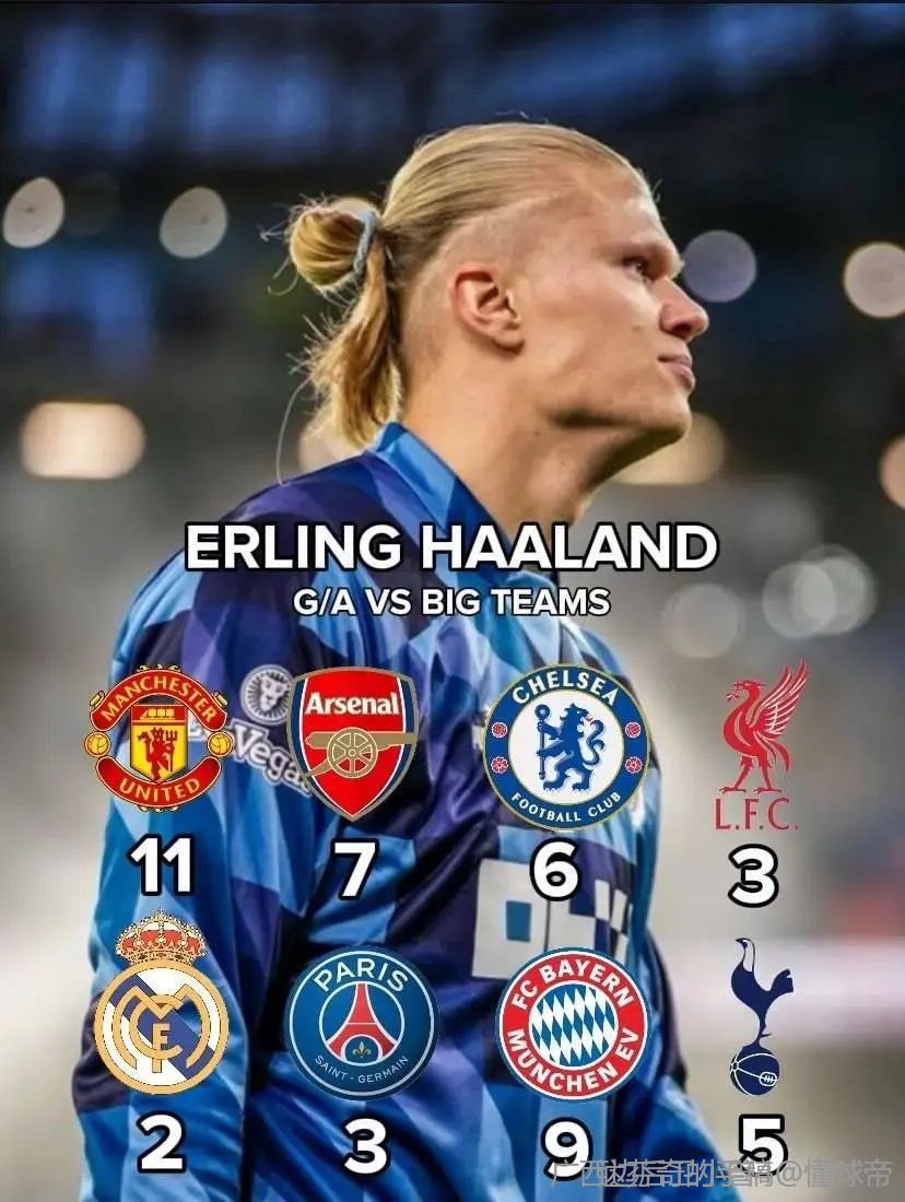 懂球帝首页>动态> 英超9次有球员赛季前6场进球8+,哈兰德独占4次