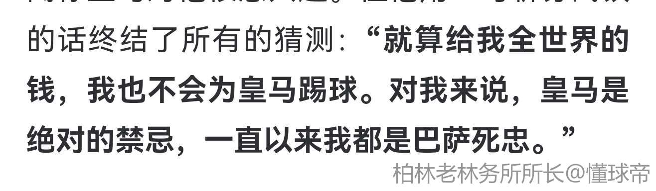 说实话评论区在座的皇萨球迷都做不到这样,给1000万欧元年薪,99%立刻同意跳反对家