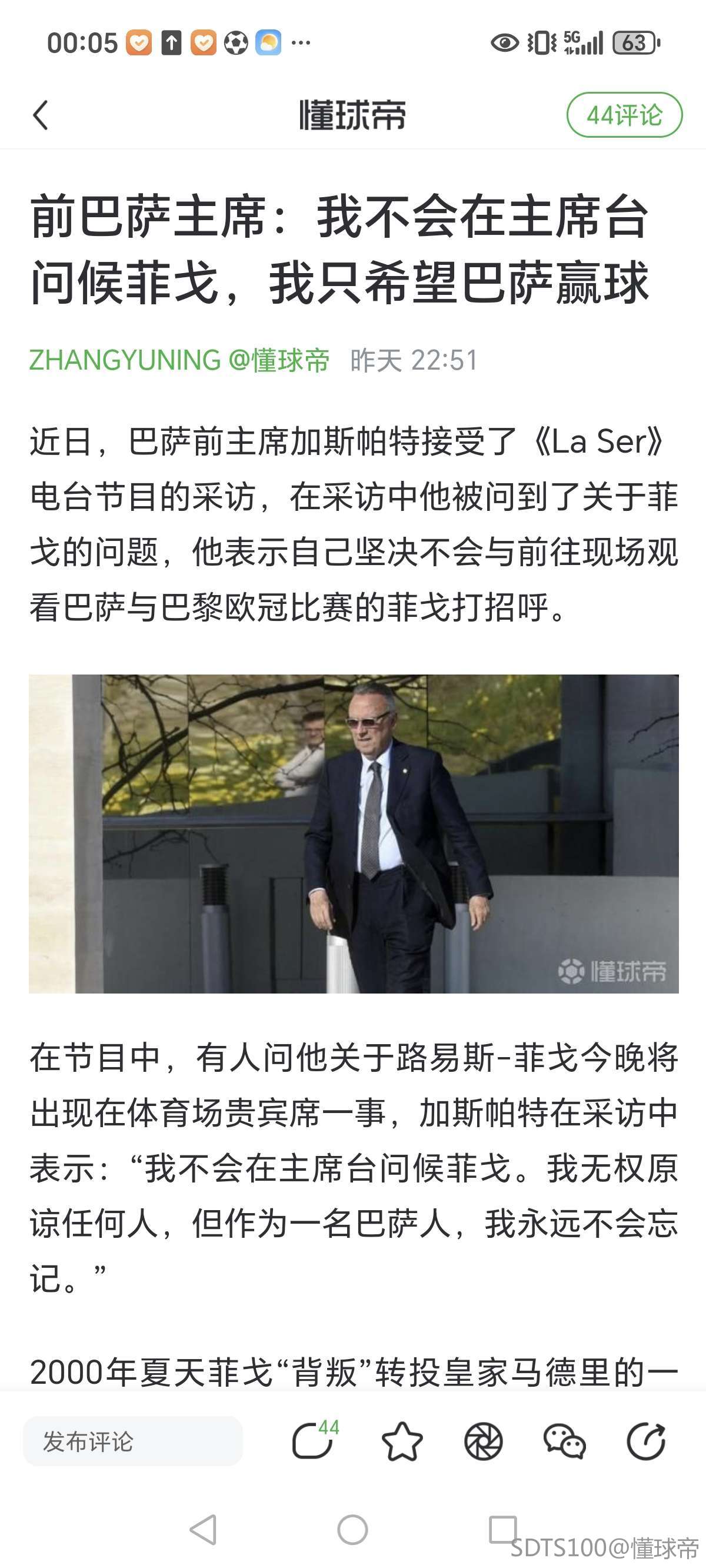 当年过年包括体坛周报和足球报,足球俱乐部都相对幼稚只能翻译转发国外的文章。那是皇马巴萨的舆论战,而没有事情的本质。(菲戈经纪人赔不了弗洛伦蒂诺的钱就得坐牢)