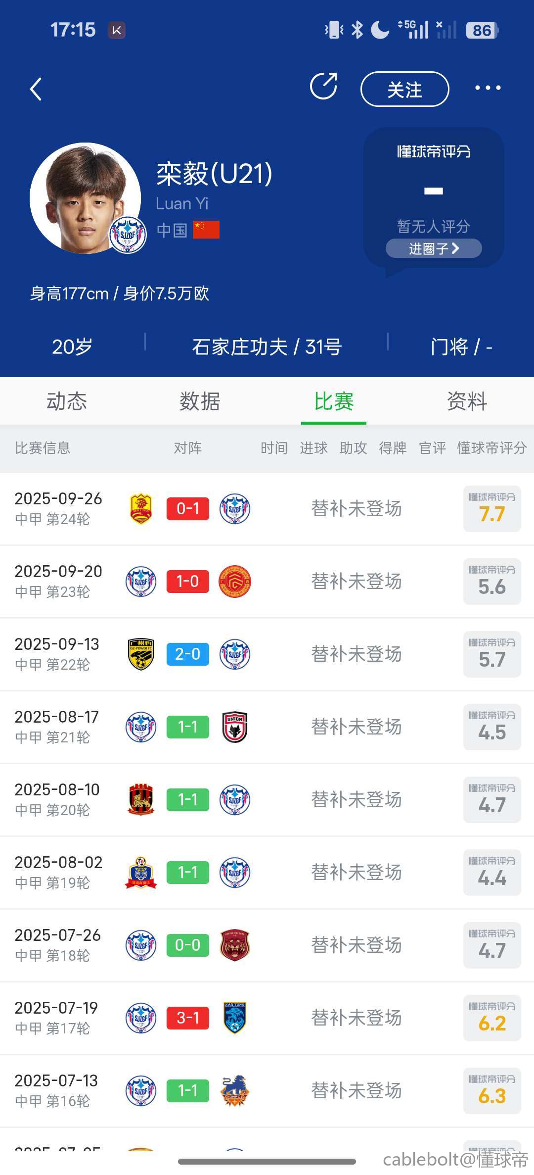 栾毅这个上场数据真有必要考察吗。。。你真要考察不如考察U20主力刘骐伟啊,不管联赛还是国家队出球真的赏心悦目