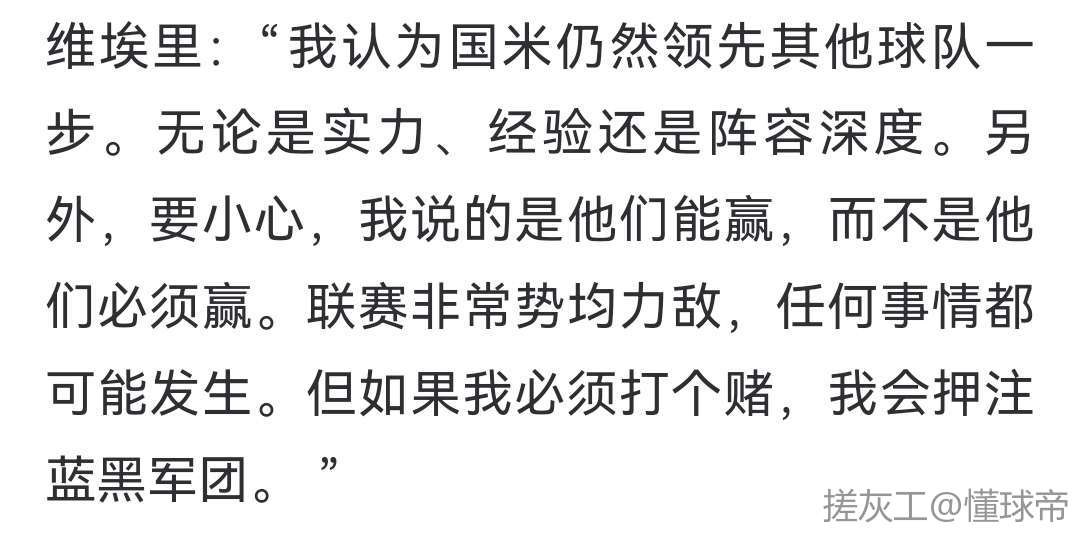看全文,如果我没猜错,他的原意应该是相信国米有夺冠的能力。豪门有一颗争冠的心不是应该的?