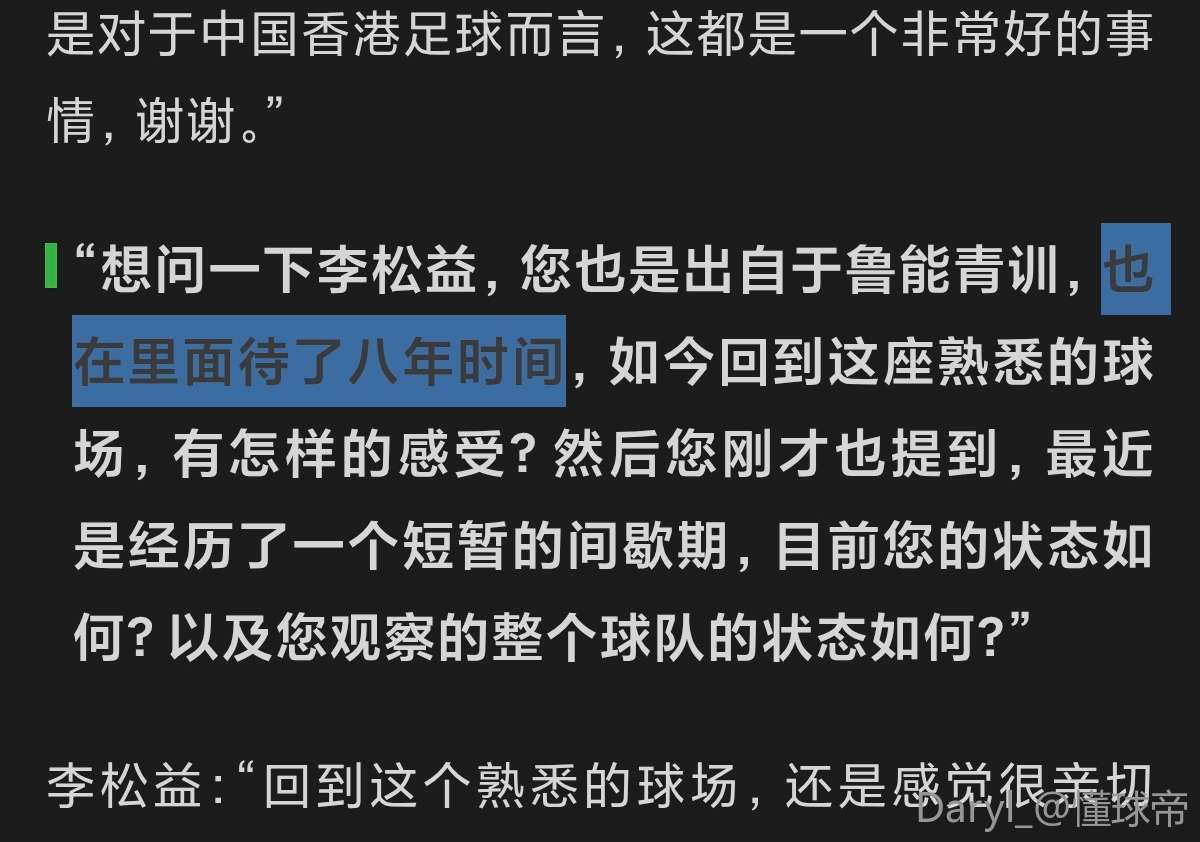 “想问一下李松益,您也是出自于鲁能青训,也在里面待了八年时间,如今回到这座熟悉的球场,有怎样的感受?然后您刚才也提到,最近是经历了一个短暂的间歇期,目前您的状态如何?以及您观察的整个球队的状态如何?”
