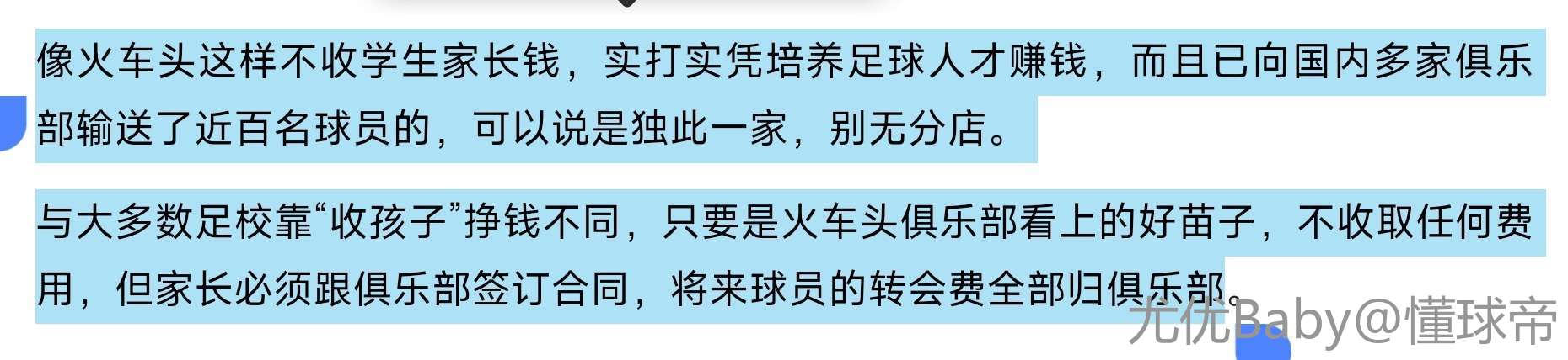 “但这种事不能再发生了”什么事?本来也没有打算收你的钱,你自己说以后不踢球了,还非要那自由身,到时候家长用孩子跟其他俱乐部套现了别人找谁说理去?还有受伤和训骂,哪个球员不是这样走来的?反正我宁愿一两个天才球员陨落,也不想青训体系崩坏!你想继续吃饭可以,你不想吃了把碗放下也没人说你,你想把锅砸了就是不行