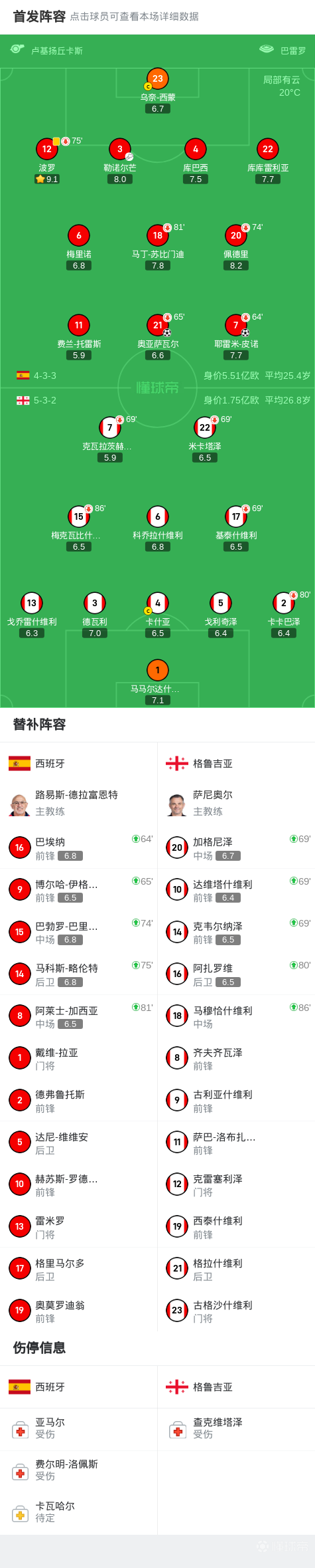 扫描下载懂球帝首页>动态> 西班牙2-0格鲁吉亚,奥亚萨瓦尔世界波,皮诺破门,费兰失点