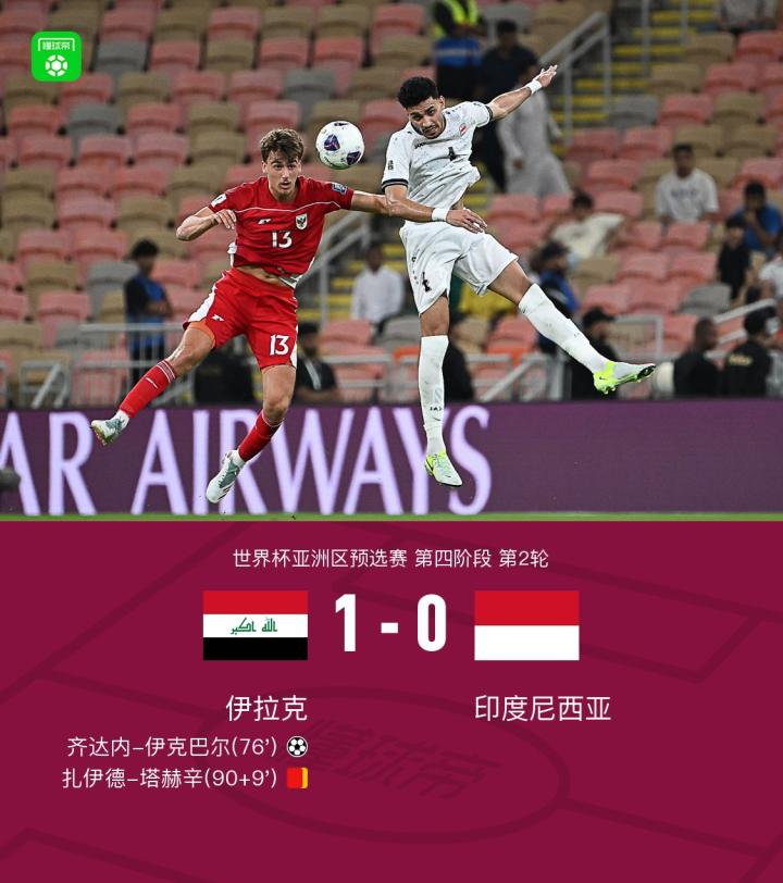 金哨马宁助力,伊拉克一剑封喉,印尼世界杯幻想破碎