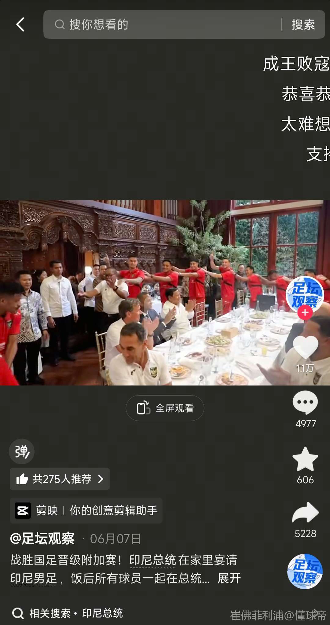 赛后,印度尼西亚足协主席托希尔在社媒写道:“感谢球迷、球员和工作人员为成功晋级2026年世界杯预选赛第四阶段所付出的努力。这是历史上首次,印尼能够走到这么远的阶段。
