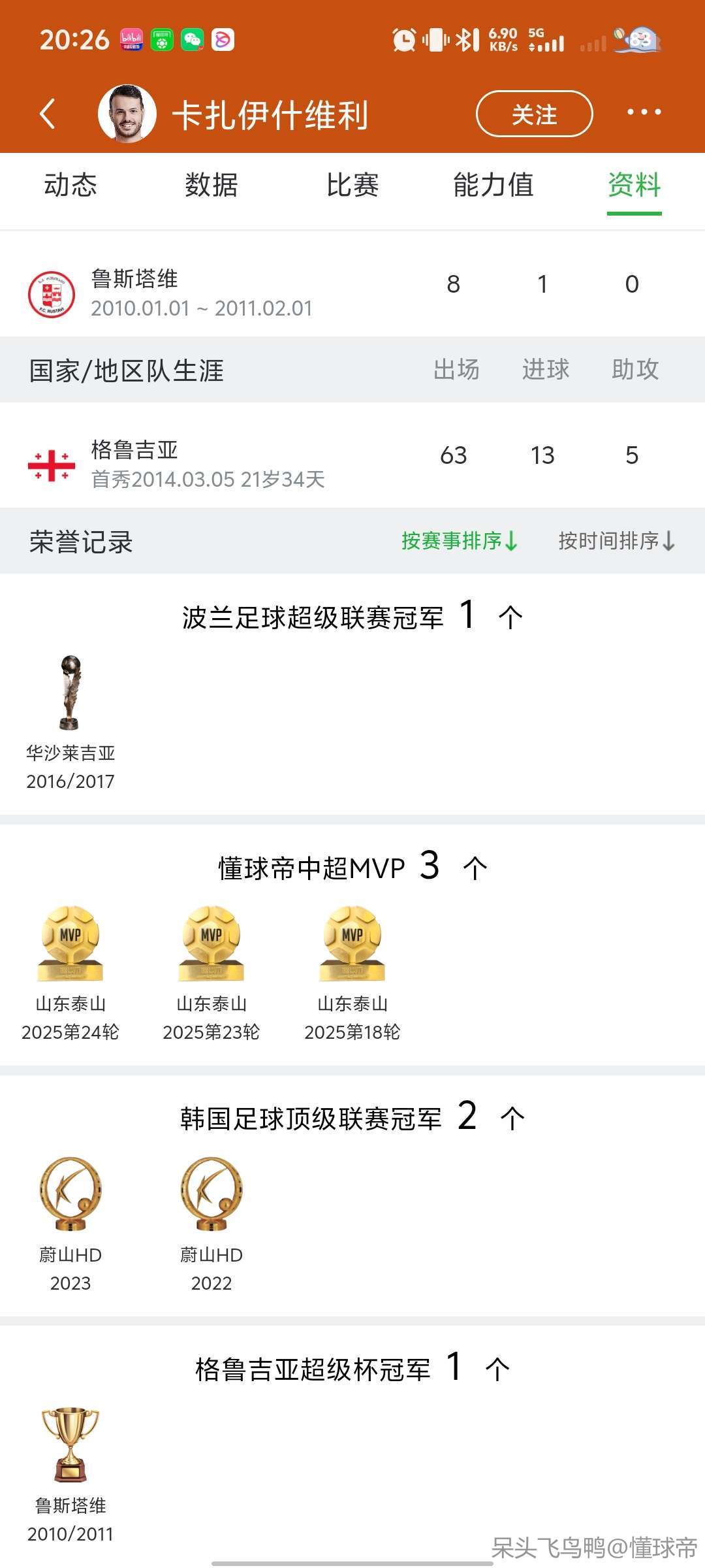 10月12日,中超联赛官方公布了第23轮联赛的最佳球员,卡扎伊什维利当选。