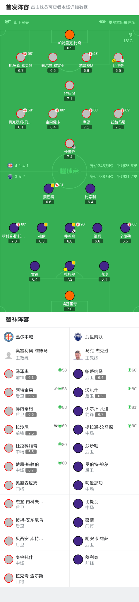 北京时间10月21日亚足联冠军精英联赛 联赛阶段 第3轮,墨尔本城对阵武里南联。墨尔本城拉沙尼破门,卡普托破门。武里南联乔希奇破门。最终比分墨尔本城 2-1 武里南联。