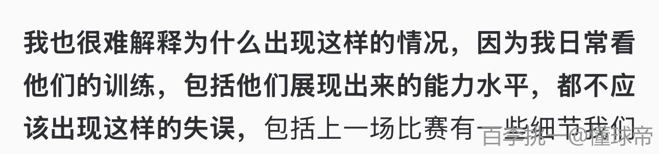 我也很难解释为什么出现这样的情况,因为我日常看他们的训练,包括他们展现出来的能力水平,都不应该出现这样的失误,包括上一场比赛有一些细节我们做得也不错,很难去解释出现这样的情况。我也相信对于联赛冠军的争夺的可能性变得越来越小之后可能对我们所有的队员们也造成了心理上的影响。但是我们现在没有任何其他的解决方案,还是要打好之后的所有的比赛。