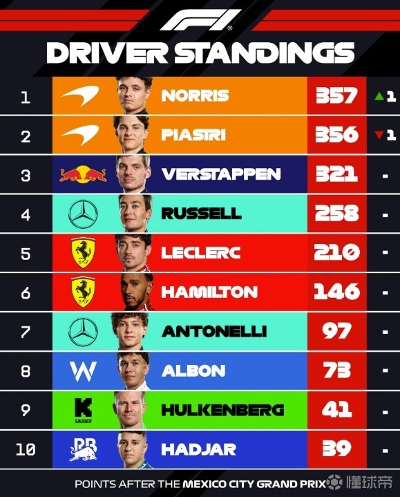 扫描下载懂球帝首页>动态> F1墨西哥正赛:诺里斯杆位夺冠,勒克莱尔第二,贝尔曼第四