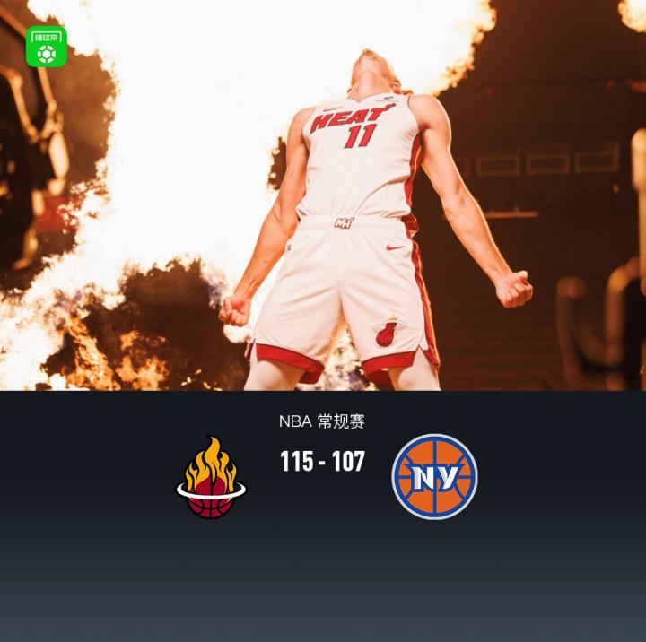 懂球帝首页>动态> 热火115-107终结尼克斯2连胜,鲍威尔29+7,布伦森空砍37分