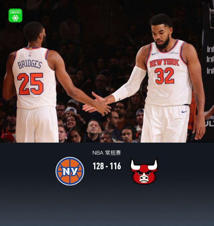 扫描下载懂球帝首页>动态> 尼克斯128-116打破公牛不败金身,布伦森31分,唐斯20+15