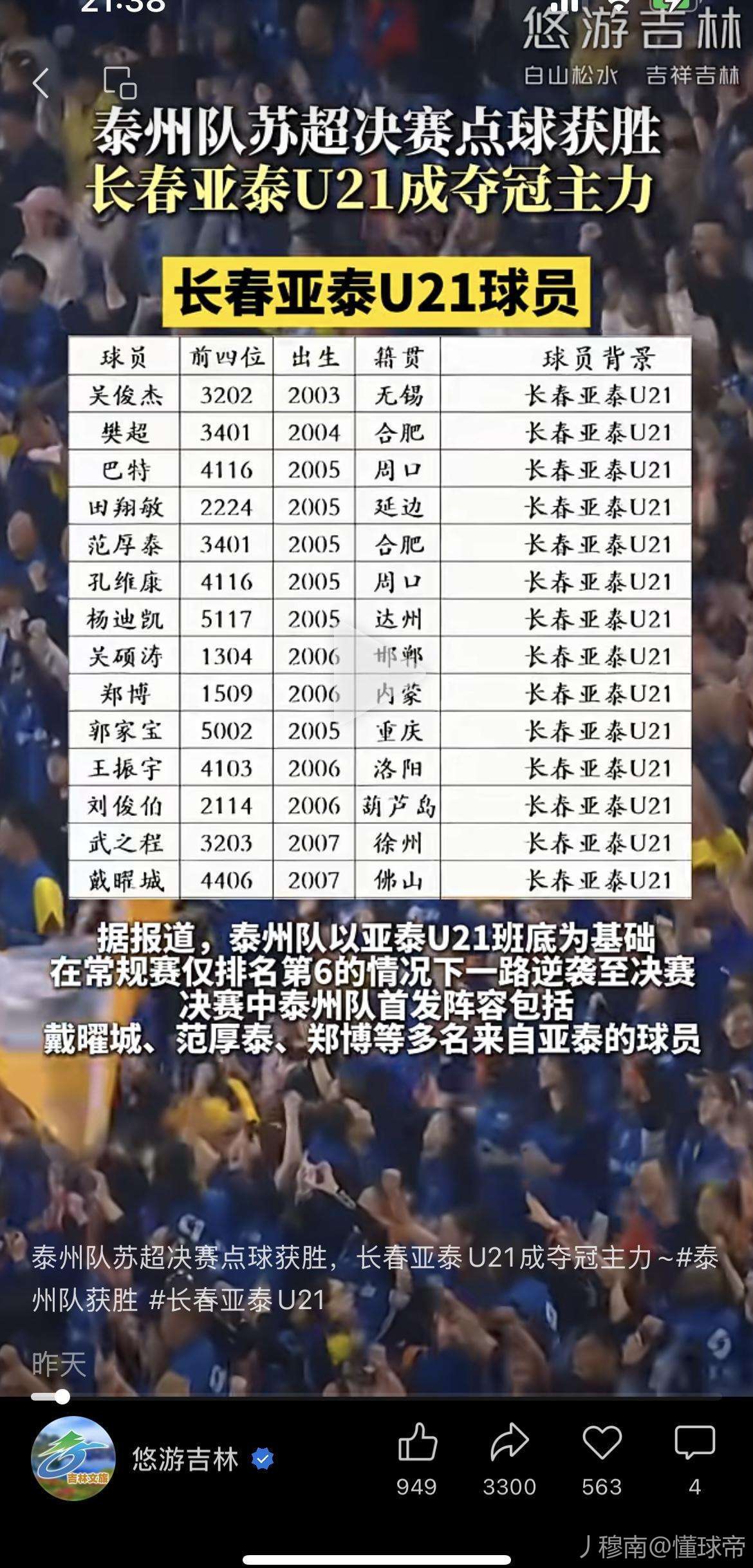 说得好 爱来自长春亚泰u21