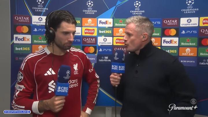 本赛季欧冠联赛阶段第4轮,利物浦主场1-0战胜皇马。索博斯洛伊接受了CBS体育的赛后采访。