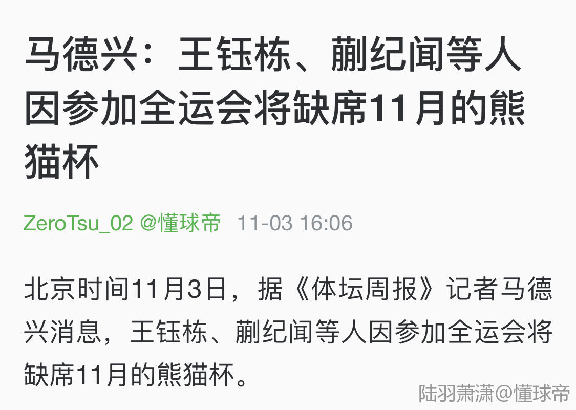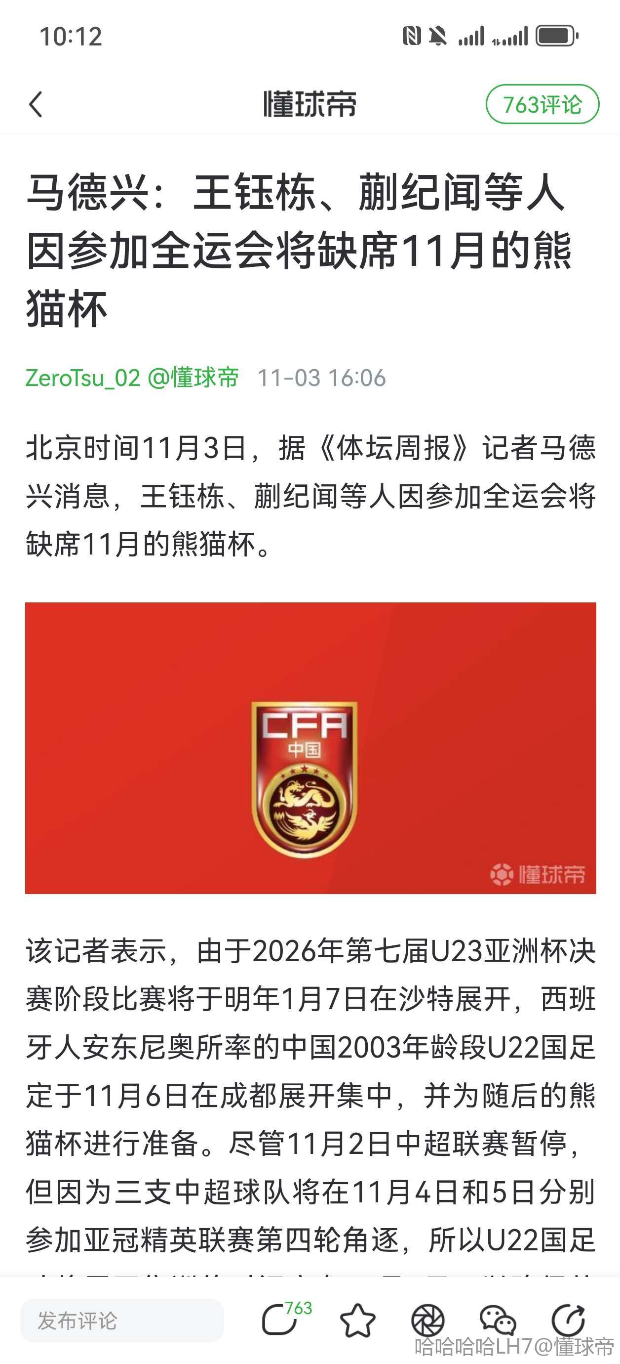 北京时间11月5日,中国足协官方公布了U22国足11月参加熊猫杯的大名单,其中参加全运会的王钰栋、蒯纪闻、刘诚宇等人入选,留洋球员王博豪在列,参加全运会的球员最晚于2025年11月13日14:00前报到,其余球员11月9日14:00前报到。