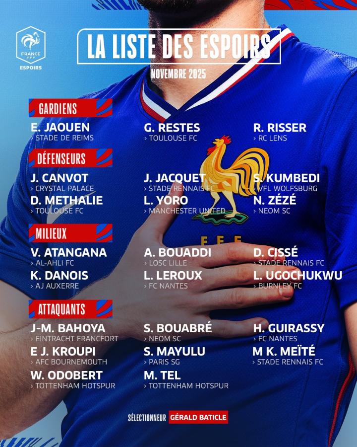扫描下载懂球帝首页>动态> 法国U21队11月大名单:约罗领衔,马尤卢、特尔和奥多贝尔在列