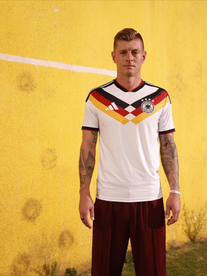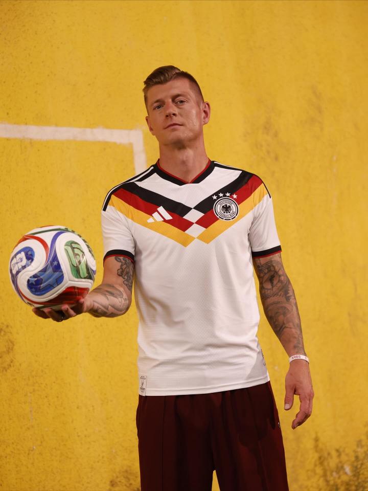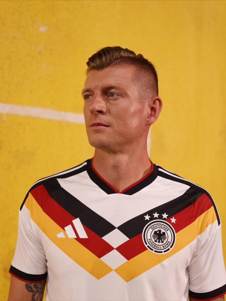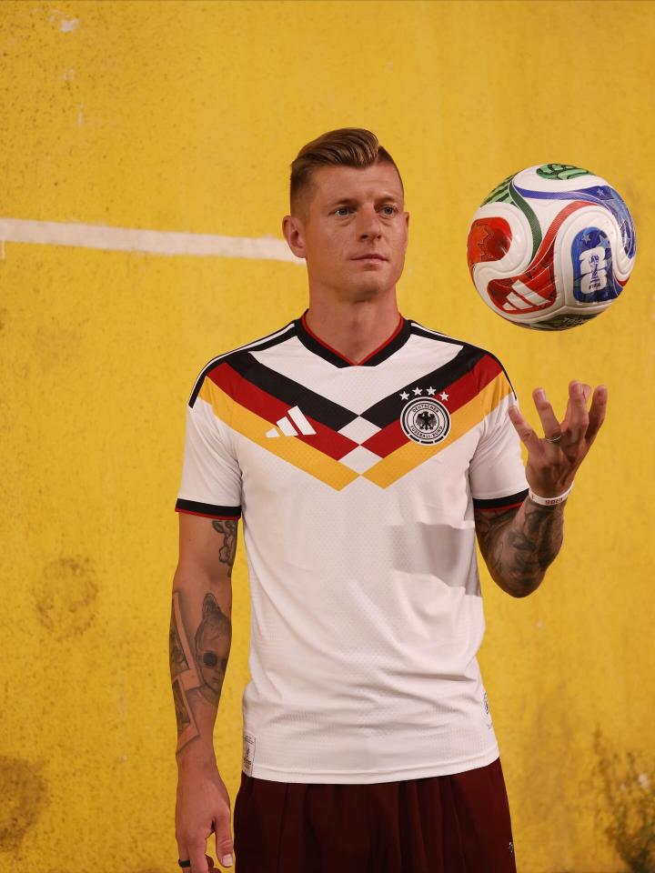 扫描下载懂球帝首页>动态> 克罗斯晒2026年世界杯德国战袍:这件球衣确实很有吸引力