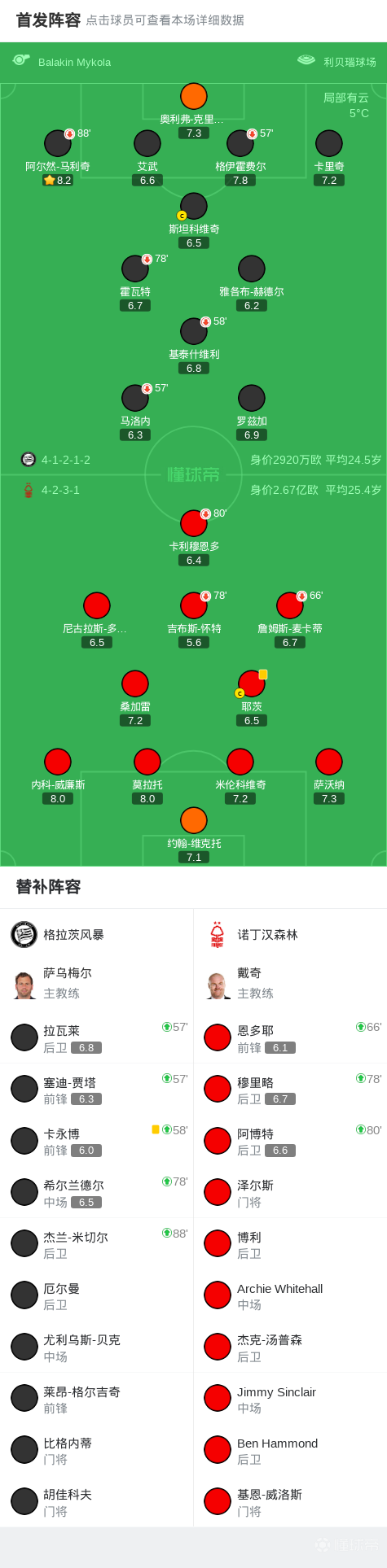 北京时间11月7日欧足联欧洲联赛 联赛阶段 第4轮,格拉茨风暴对阵诺丁汉森林。最终比分格拉茨风暴 0-0 诺丁汉森林。