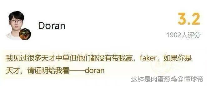 有些不看比赛没理解的东西真的搞笑。doran夺了个冠就能得出宙斯不行?难道不是拳头版本把上单权重无限降低?就拿打完美来说,去年和今年谁爆了完美五把谁是互爆?