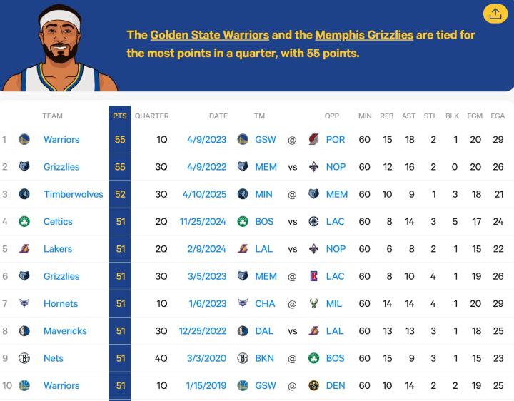 扫描下载懂球帝首页>动态> 攻势如潮,热火首节攻下53分,仅次于勇士和灰熊位列历史第二