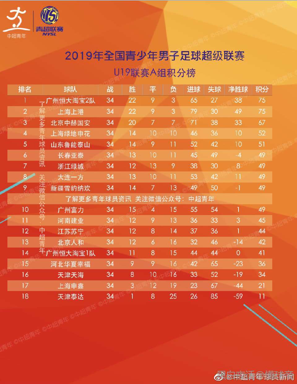 建议这个新的U20联赛可以分南北赛区,一个赛区18支队伍,34轮踢完之后两个赛区前四名进入争冠组。再踢主客场双循环决出最后的总冠军!