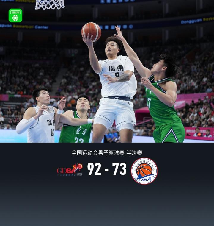 北京时间11月11日全国运动会男子篮球赛 半决赛,广东男篮对阵辽宁男篮。开场辽宁依靠高诗岩咬住比分,随后广东赵睿领衔多点开花迅速领先两位数,首节结束赵继伟因大腿拉伤退赛,次节辽宁鄢手骐站出来联手高诗岩缩小分差,半场广东45-37辽宁,第三节辽宁一度迫近比分,但来到节末段辽宁无力支撑彻底崩盘,最终广东男篮92-73辽宁男篮晋级决赛。