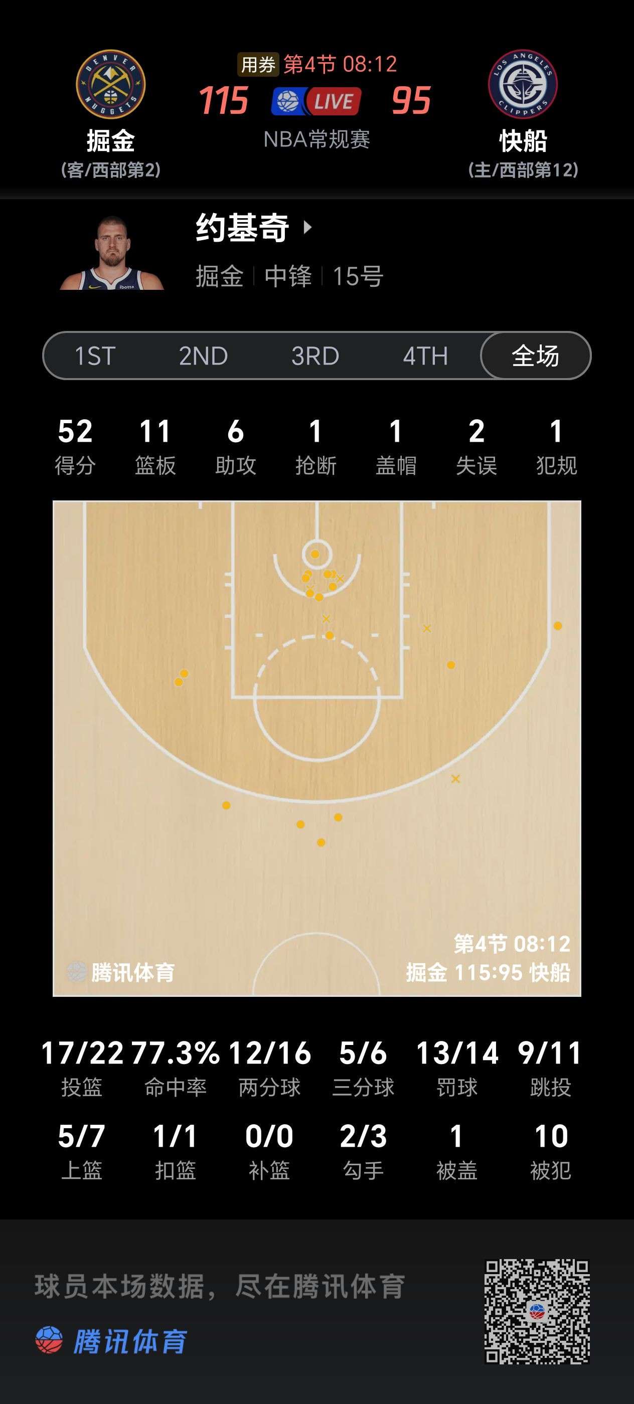 扫描下载懂球帝首页>动态> 全场不得100分?约基奇首节25分创NBA中锋首节最高得分纪录