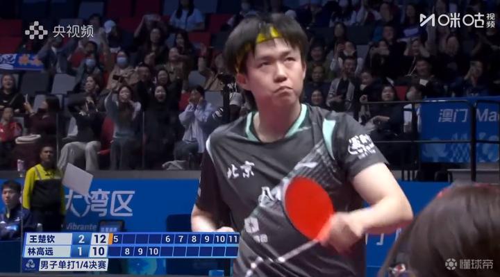11月13日,全运会男单1/4决赛,王楚钦4-2(11-9、8-11、12-10、11-5、7-11、11-4)战胜林高远晋级四强,半决赛对战樊振东。