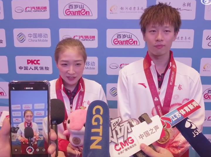 最后赢得比赛,我觉得这一瞬间真的很美妙,我觉得这也是体育的魅力吧!很感谢大家,我觉得我的全运会之旅挺完美的,也感谢我的搭档林高远。”