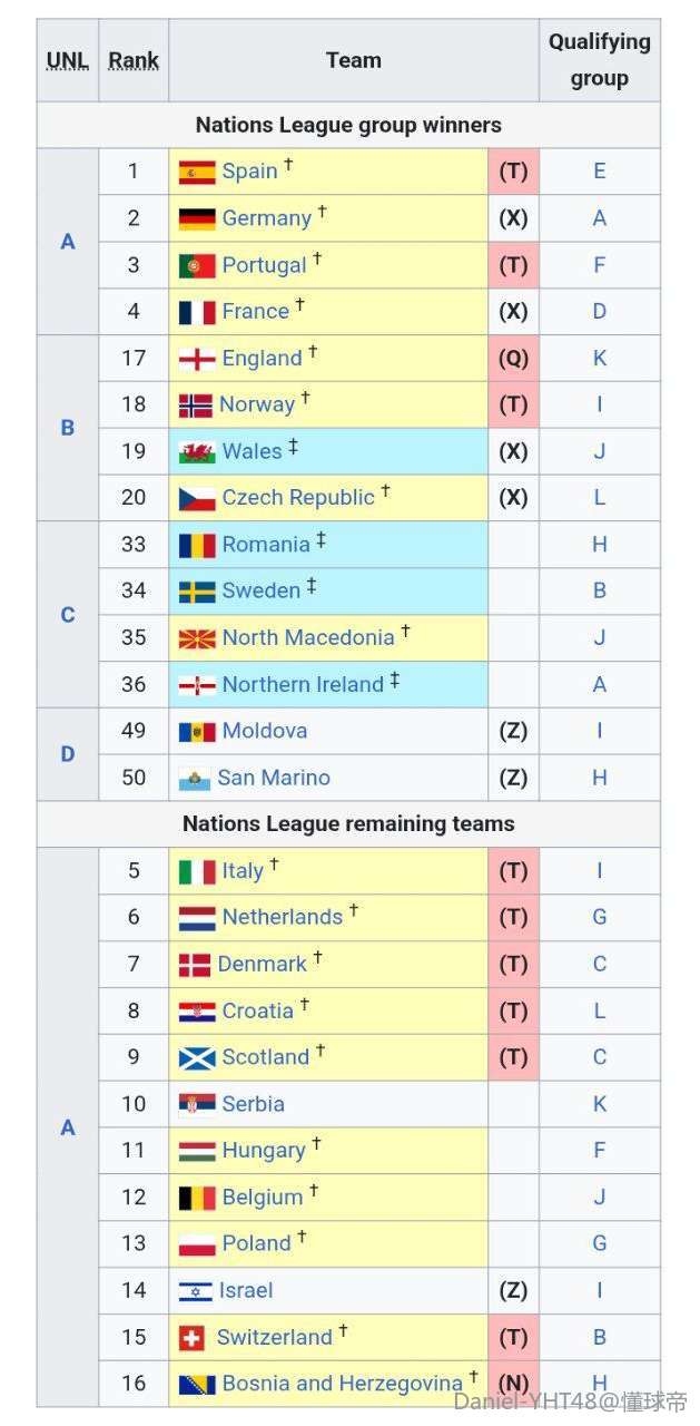 已经排在了圣马力诺的前面,占据四个名额,圣马力诺正式告别附加赛