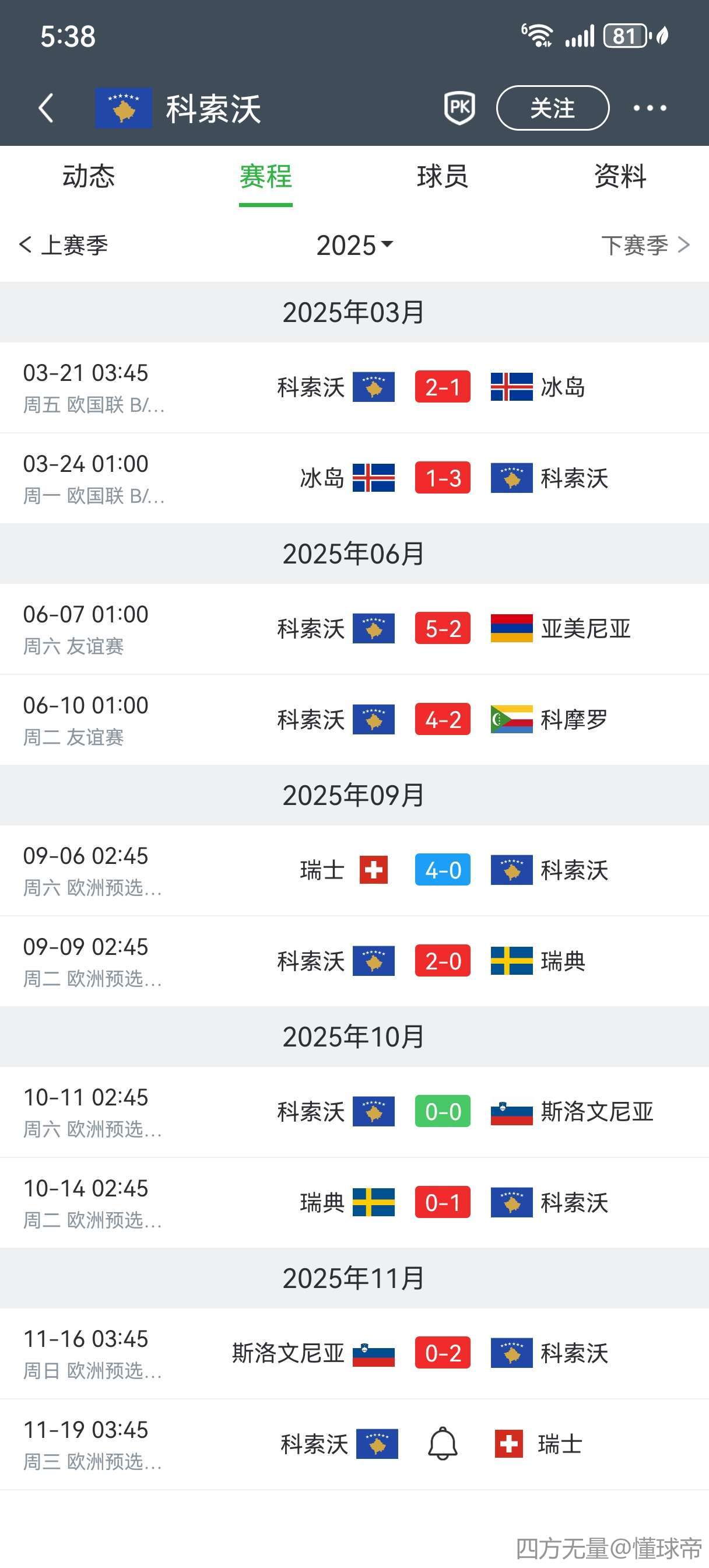 科索沃锁定小组前二,也意味着瑞典彻底失去小组前二的可能,世界排名倒数第一的圣马力诺正式告别“可能递补附加赛”这个梦了(隔壁罗马尼亚输给波黑更是又占一个名额)