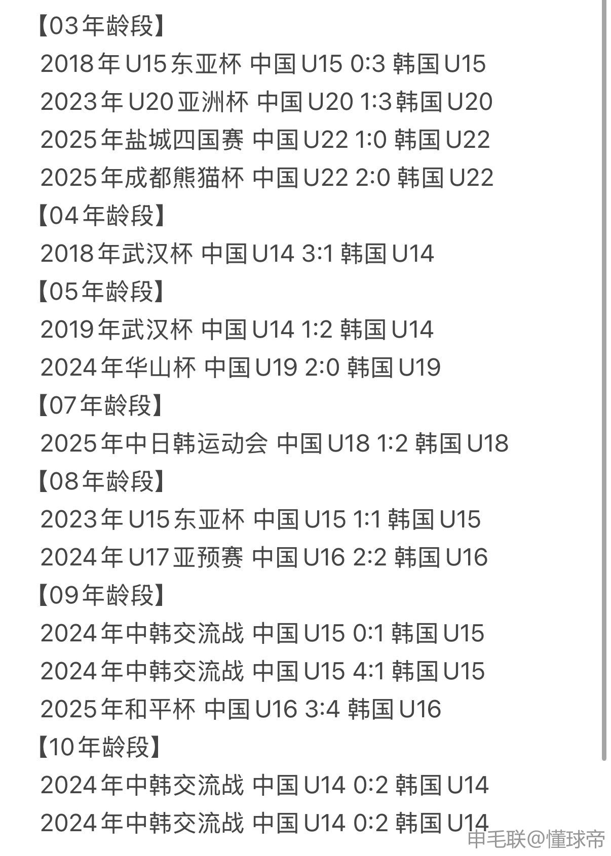 扫描下载懂球帝首页>动态> 体坛:2003-06年龄段,中国队对韩国队的战绩已占据优势