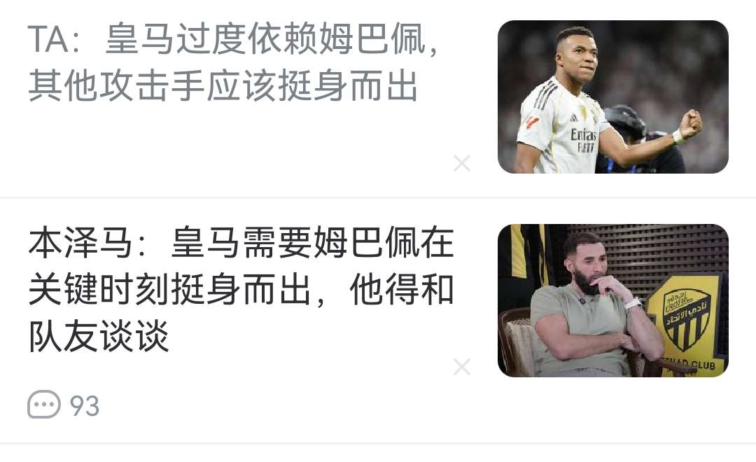 大巴黎和皇马就是一个很好的例子,姆巴佩强,但是姆巴佩的球队并不强。