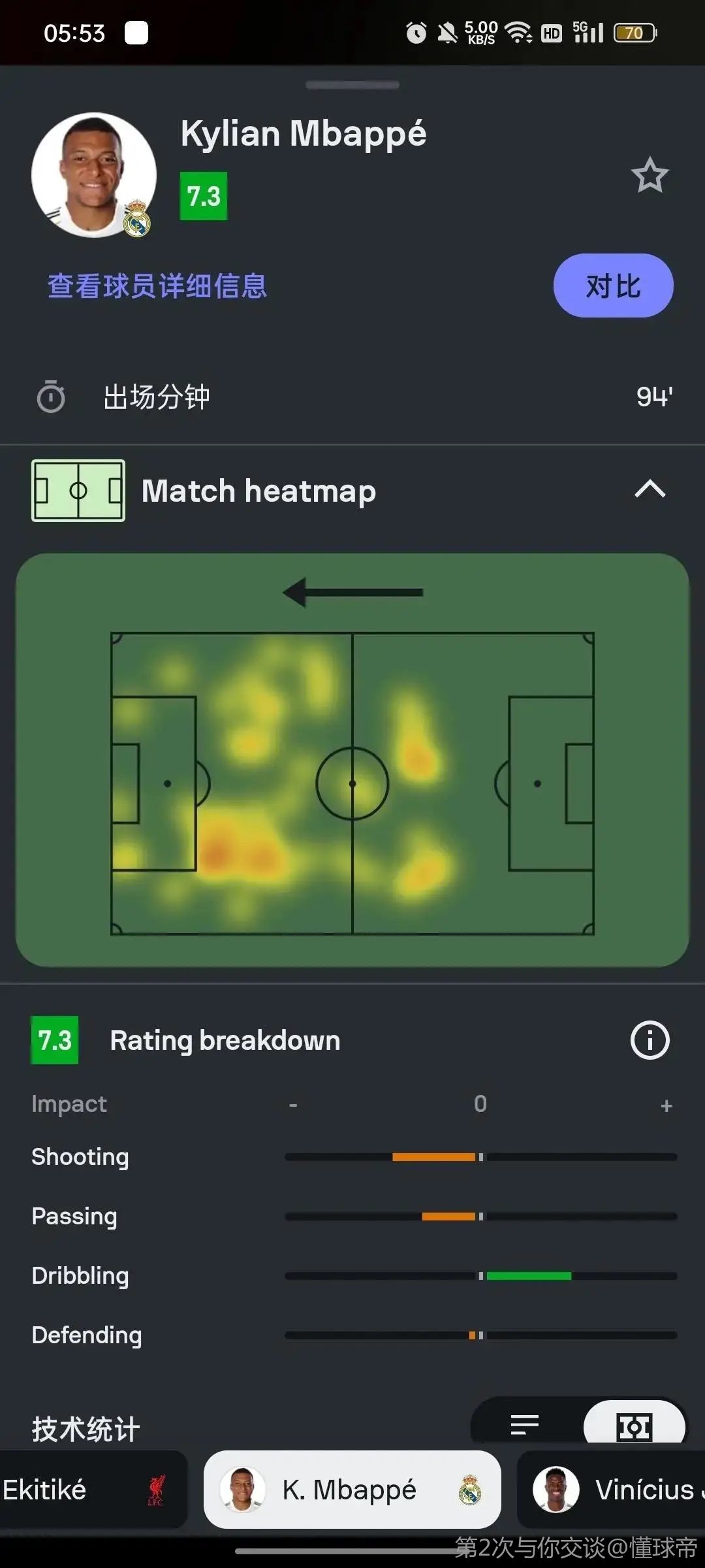 我觉得虽然姆巴佩数据非常好看,但是他不在其他前锋照样能carry,维尼休斯和罗德里戈还是很有灵性的