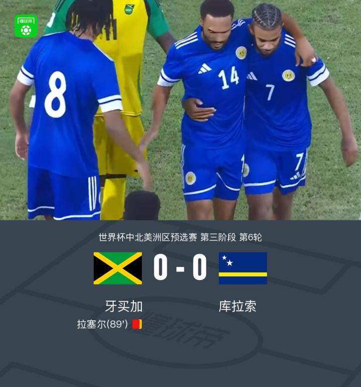 扫描下载懂球帝首页>动态> 库拉索0-0牙买加队史首进世界杯!牙买加三度中框+读秒点球被取消
