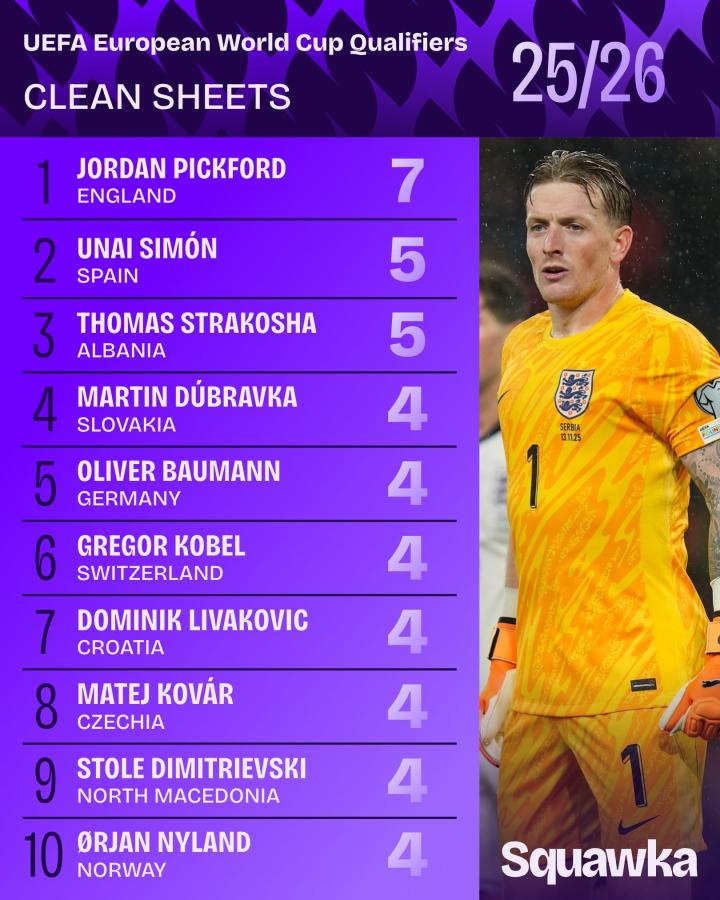 扫描下载懂球帝首页>动态> 欧预赛门将零封榜:皮克福德7次第一、乌奈-西蒙5次第二