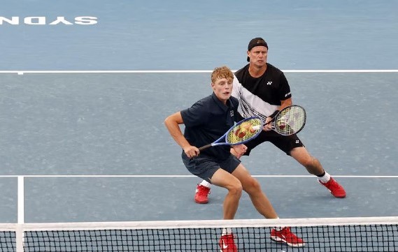 扫描下载懂球帝首页>动态> 上阵父子兵,44岁网球名宿休伊特与儿子参加挑战赛男双比赛