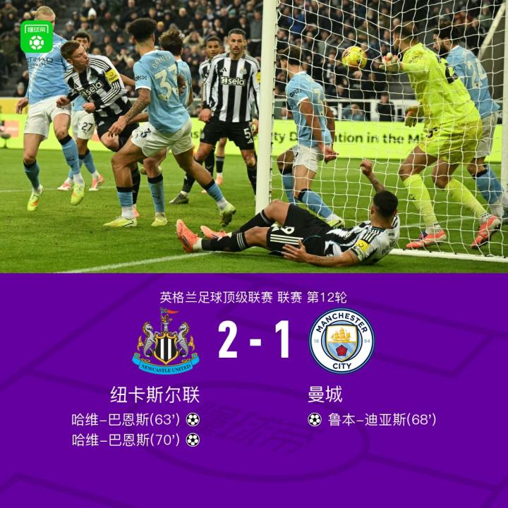 扫描下载懂球帝首页>动态> 剑南春|曼城客场1-2纽卡,巴恩斯梅开二度,鲁本-迪亚斯破门