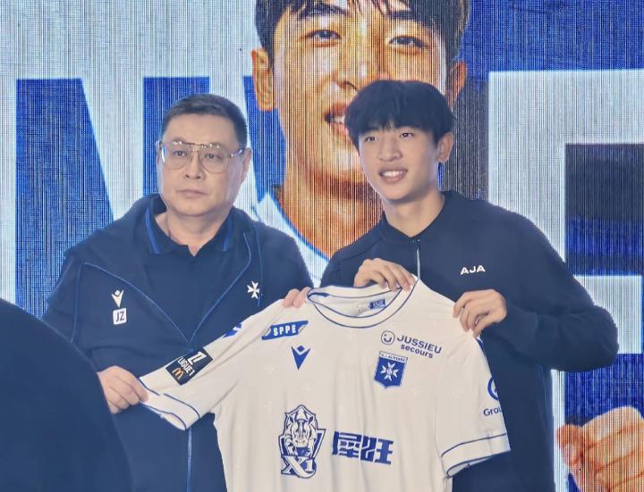 周云杰在发布会上授予了梅州客家17岁小将魏祥鑫欧塞尔球衣,2026年7月1日,魏祥鑫将正式加盟欧塞尔俱乐部。