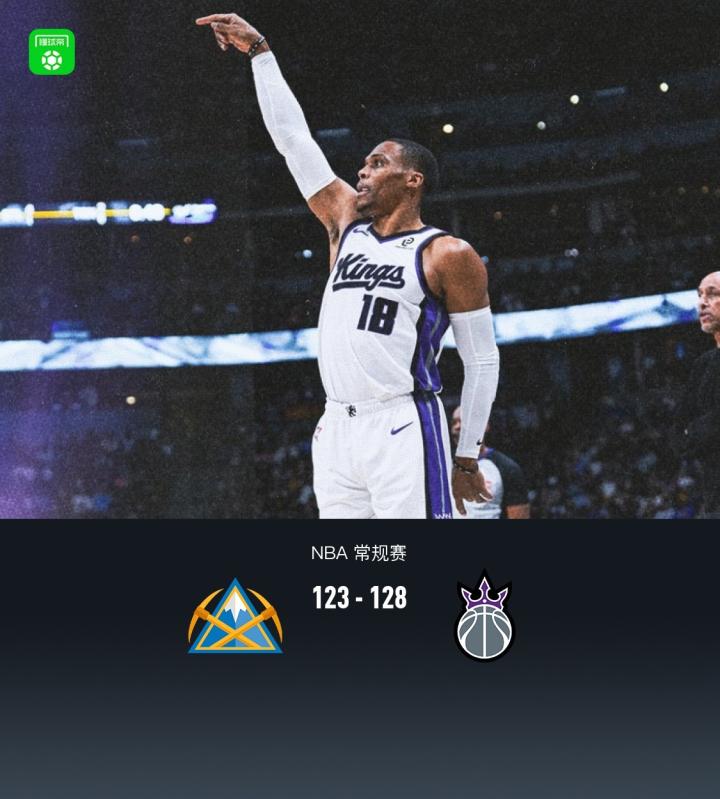 第四节掘金约基奇拿下20分,国王威斯布鲁克拿下15分,最终掘金123-128不敌国王