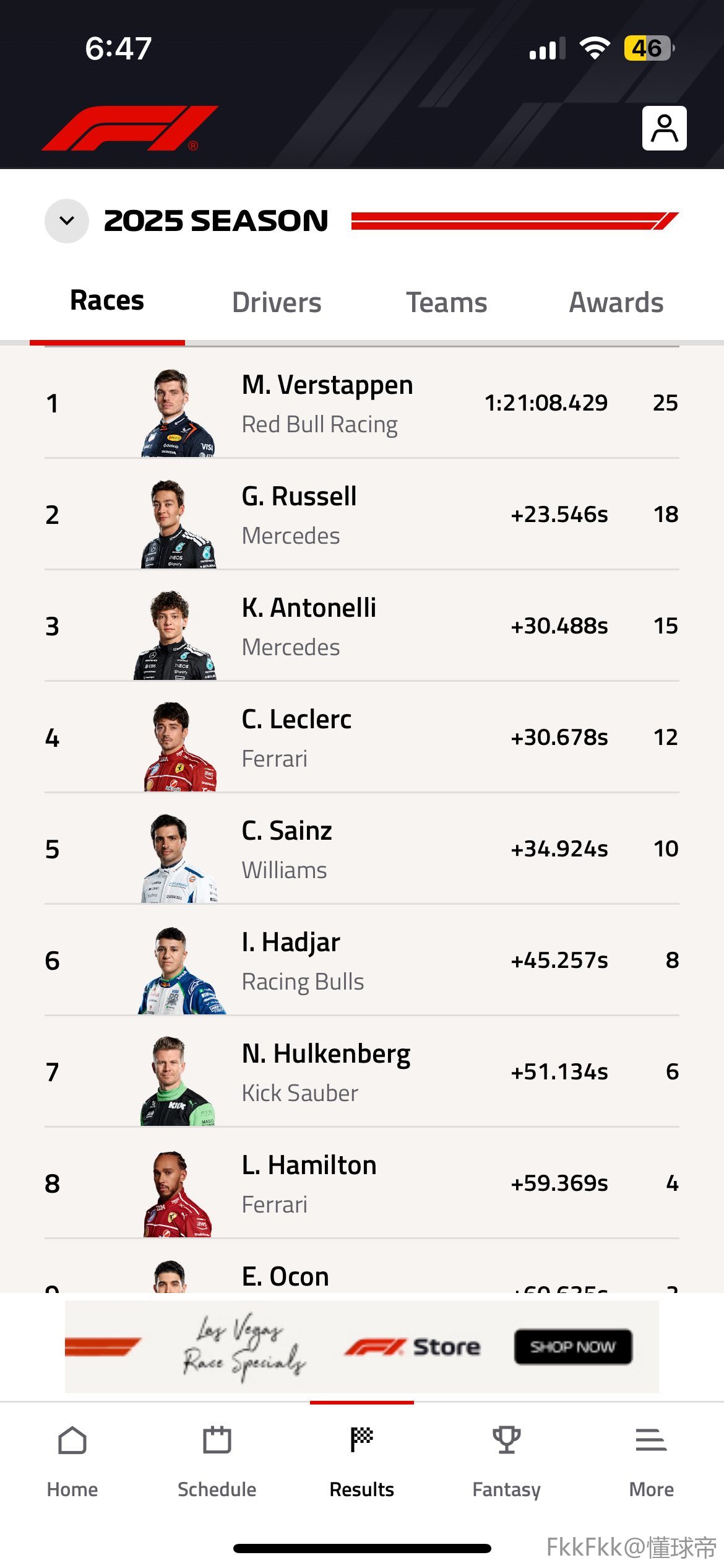 在迈凯伦双车本站被取消成绩后,维斯塔潘的积分追平了皮亚斯特里来到了366分,两人距离诺里斯也只有24分的积分差距了。
