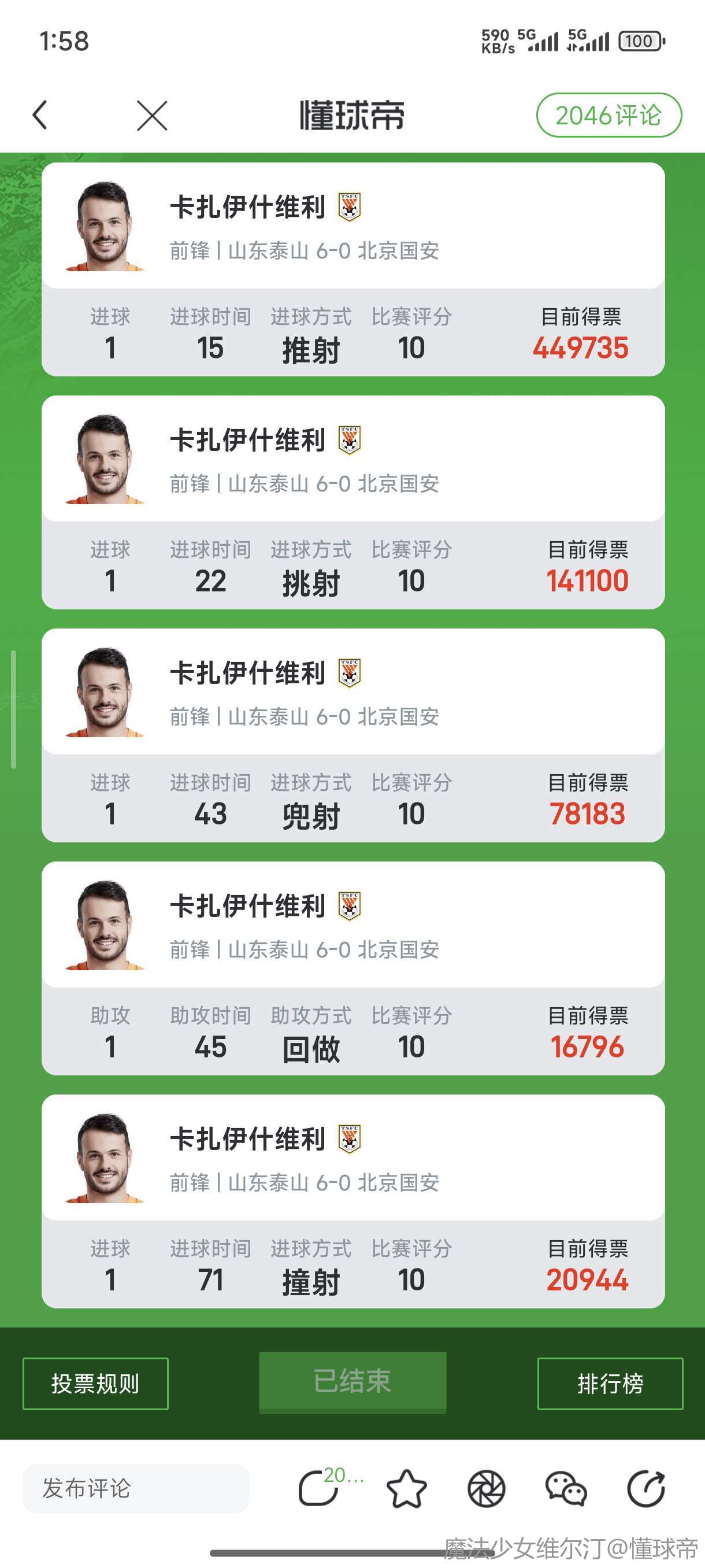 11-22 17:42懂球帝2025赛季中超第30轮MVP投票开启!